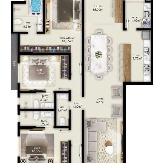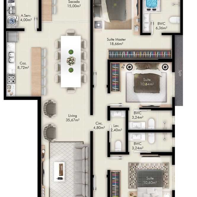 - 3 Dormitórios - 3