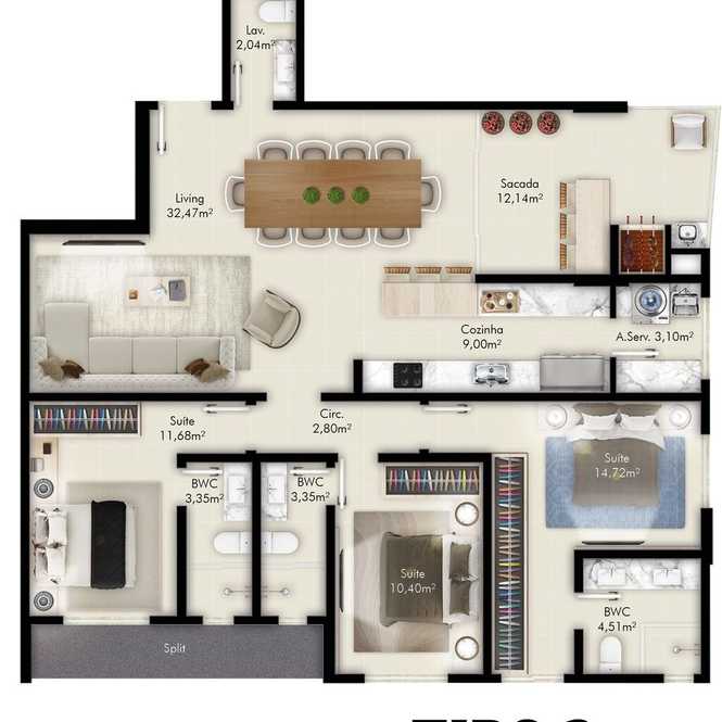 Apartamento 3 Dormitórios