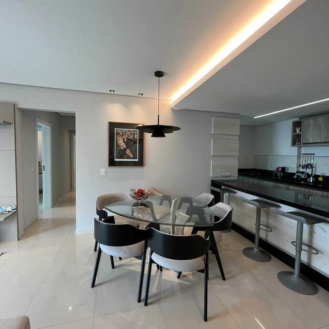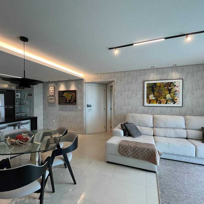 Apartamento com vista para o mar, composto por 3 suítes e living integrado, ideal para quem busca conforto e praticidade. O imóvel é mobiliado e está pronto para morar, oferecendo uma sacada com lareira e lavabo, além de área de serviço. Conta com duas vagas de garagem.