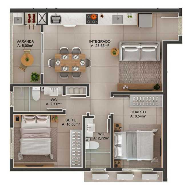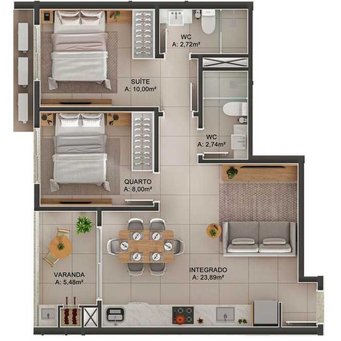 - 60.07 Área Privativa / Construída - 60.07