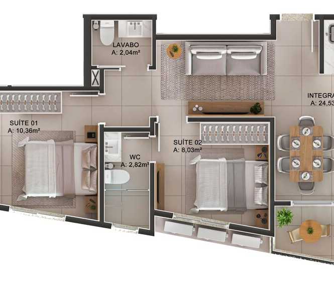 Planta 01 - 2 dorm 60 07m²