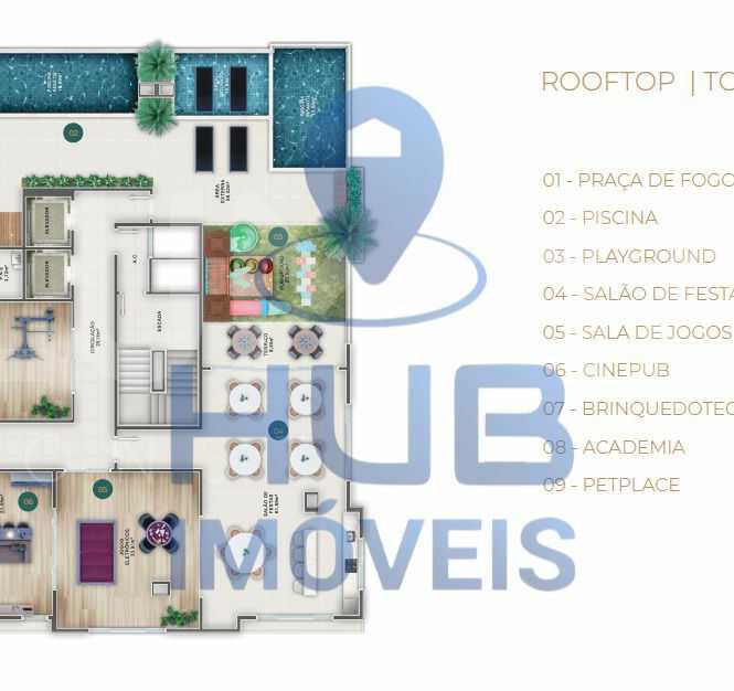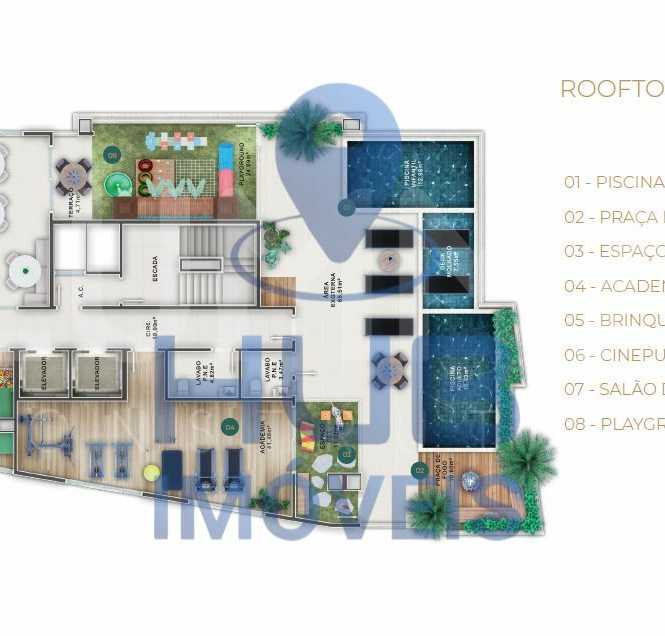 Piscina aquecida, academia, cinema, salão de festas, sala de jogos, brinquedoteca, pet place, fire place, mini market interno e salas comerciais no térreo.