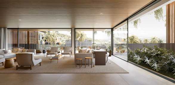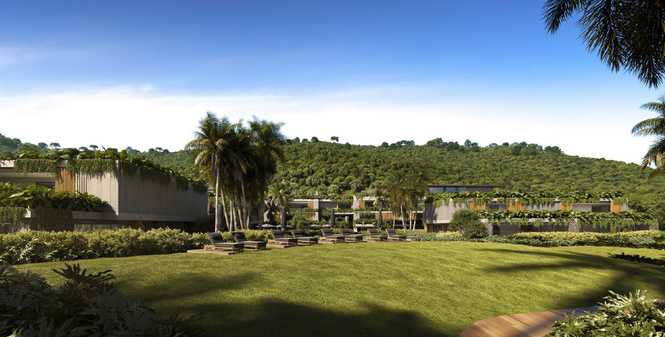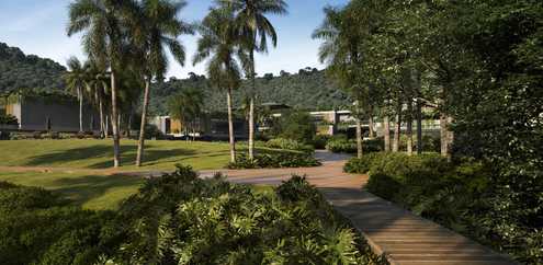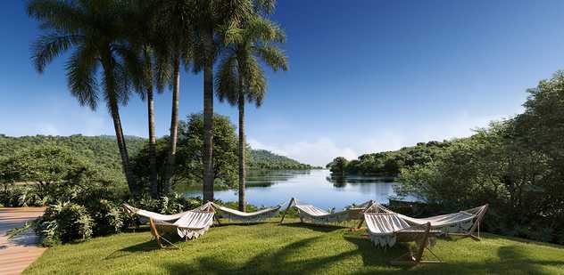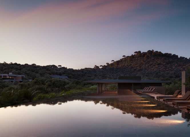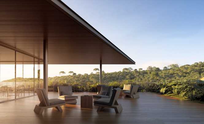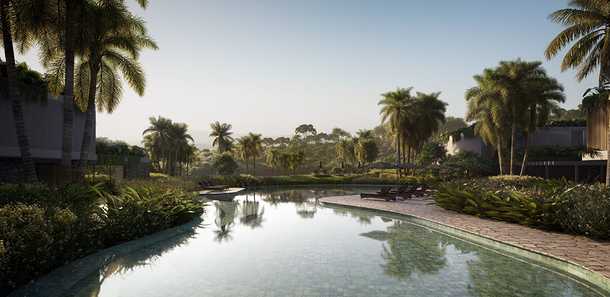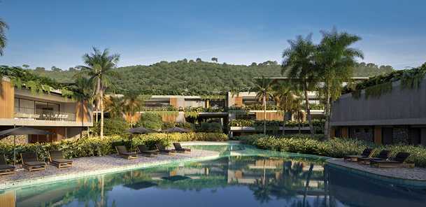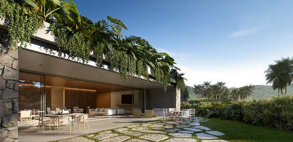 - Piscina Imersiva Junto ao Verde: refresque-se em uma piscina integrada ao verde exuberante;