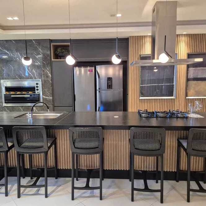 - Sacada integrada com churrasqueira a carvão