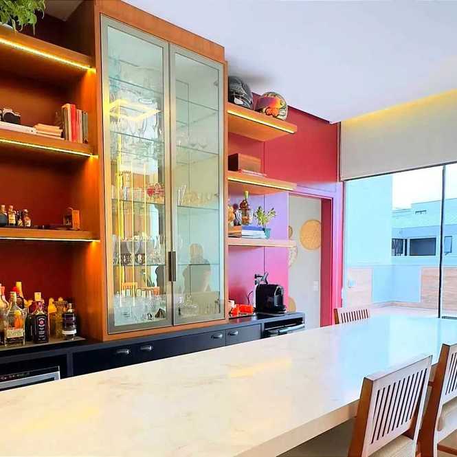 - Cozinha e espaço gourmet integrados.
