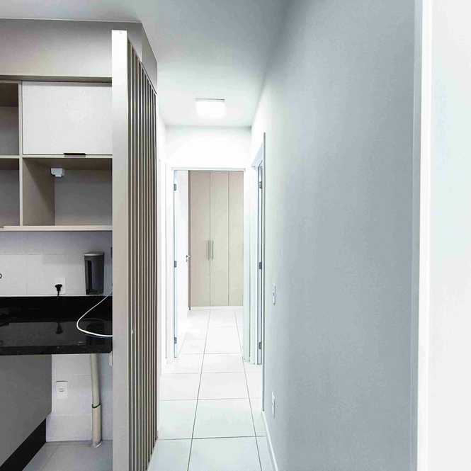 Com aproximadamente 60m2 de área privativa, esse apartamento possui uma distribuição inteligente, com dois dormitórios (sendo 1 suíte). Além disso, conta com uma sala espaçosa, uma cozinha integrada com a sala de estar, interfone, fechadura com biometria, dois banheiros ambos com box de vidro. O imóvel também já possui espera para ar condicionado, móveis planejados em ambientes amplos, arejados e iluminados naturalmente. Outros destaques incluem teto com gesso e medição individual de água, gás e luz. Para completar, o apartamento possui uma vaga de garagem descoberta.