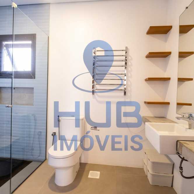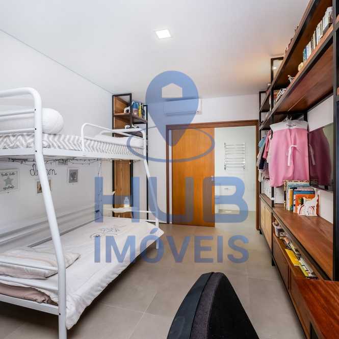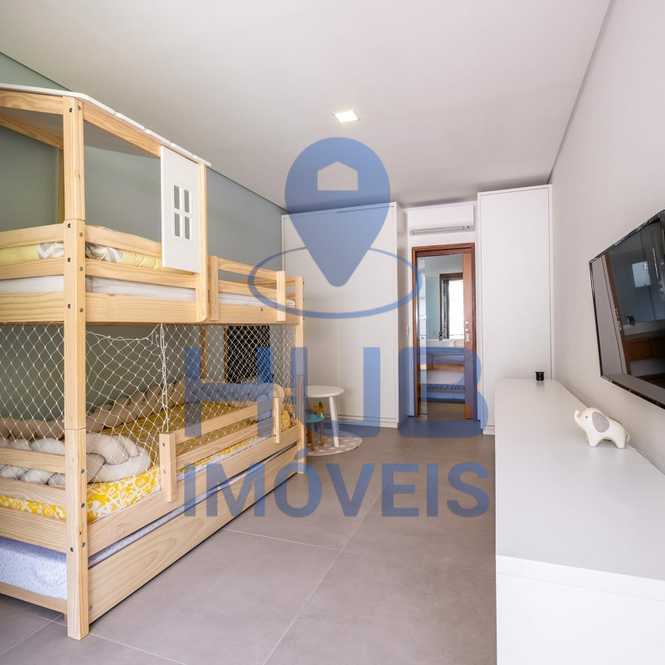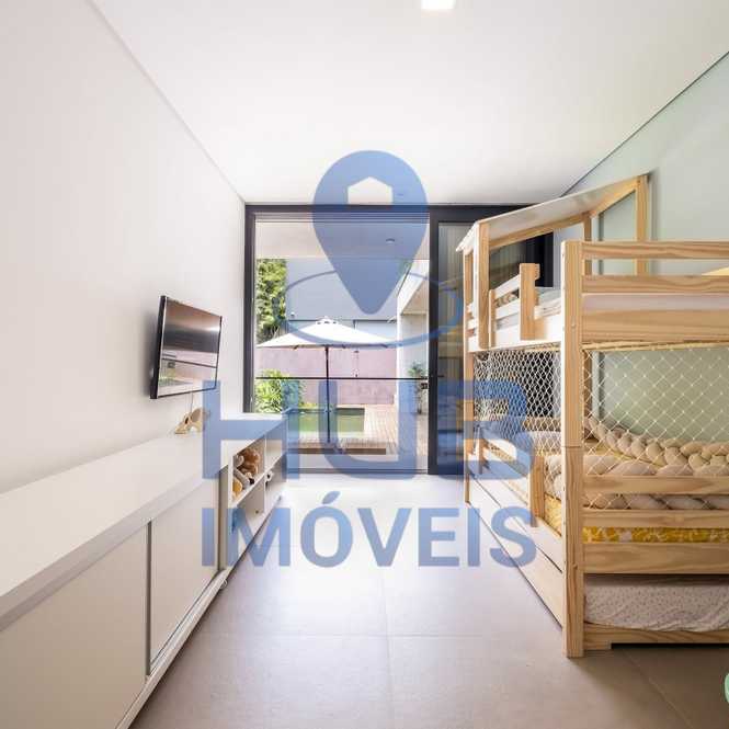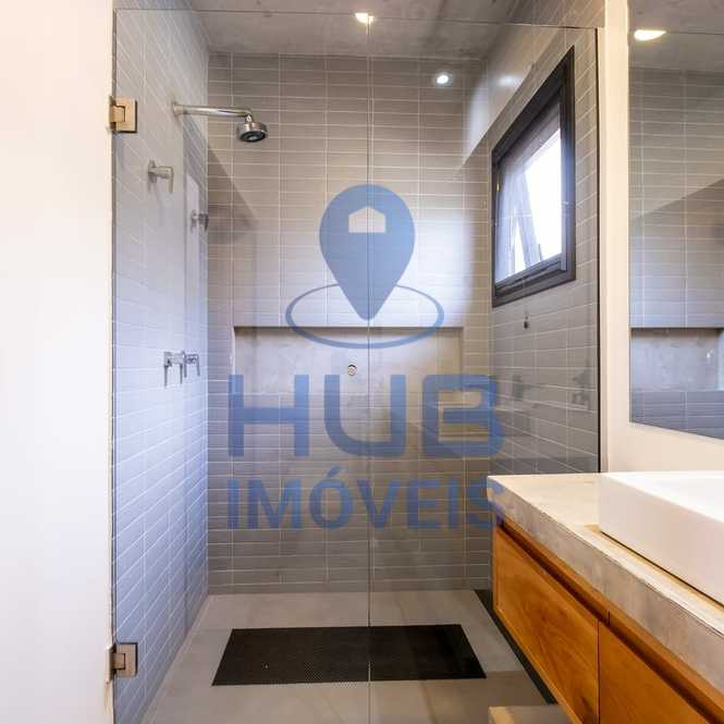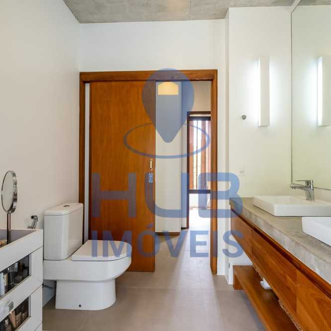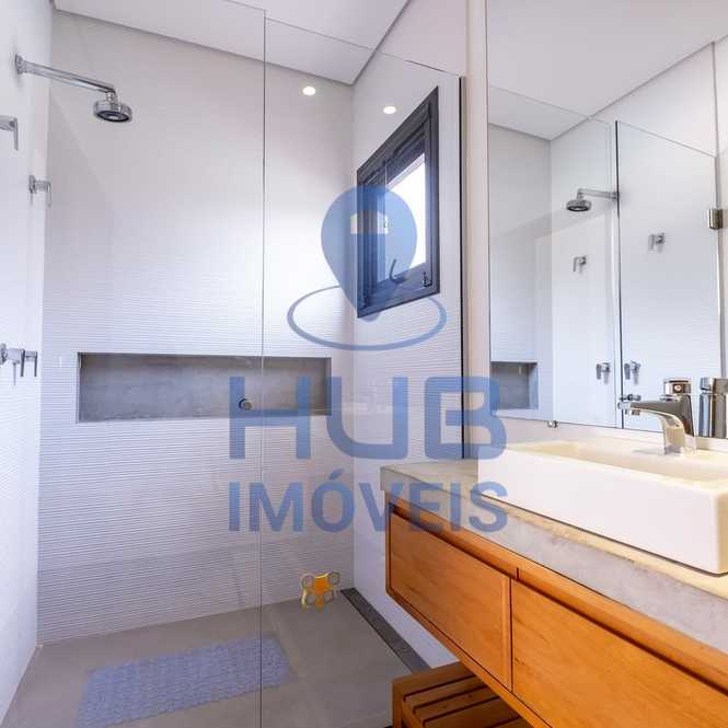 3) Piso Superior: 01 suíte máster privativa com armários planejados e banheiro com pias e chuveiros duplos; sacada lateral que conecta a suíte ao banheiro.