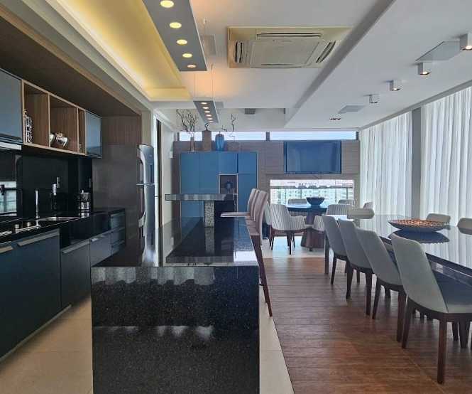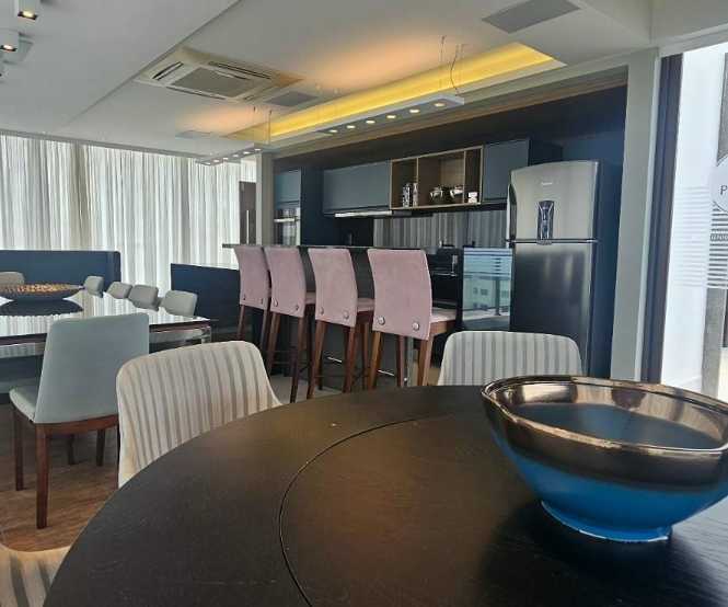 O condomínio oferece uma infraestrutura completa para o seu conforto e lazer: piscina, salão gourmet, academia com vista panorâmica para a Beira Mar Norte, além de ar condicionado, portaria 24 horas e um ambiente seguro e exclusivo.