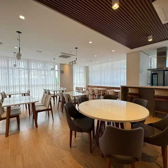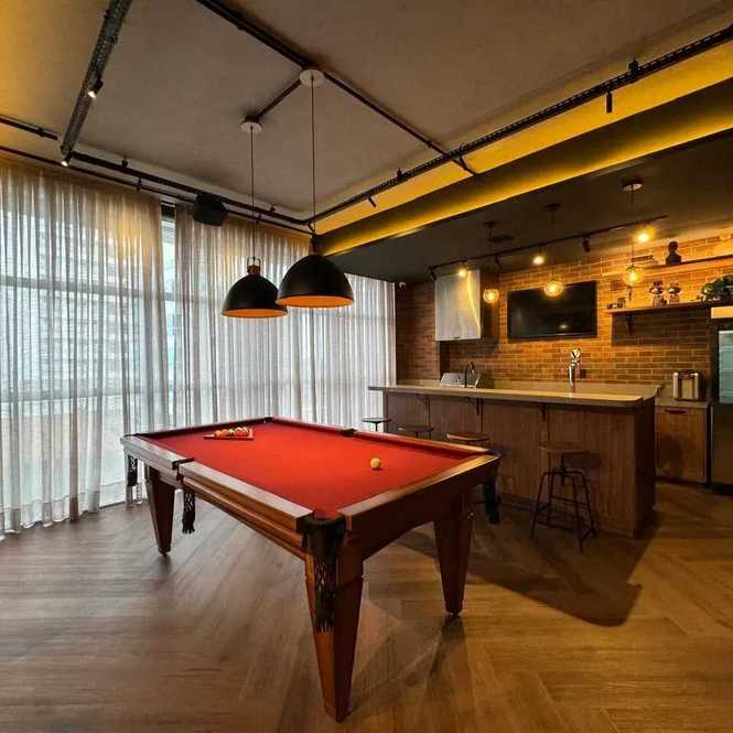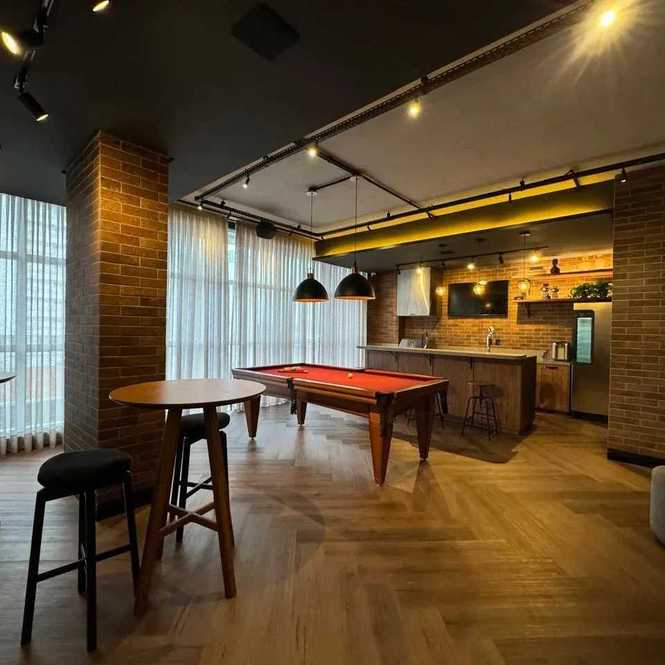 - Rooftop com piscina de borda infinita e salão gourmet