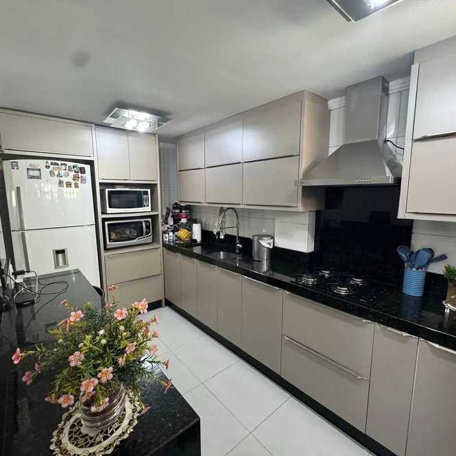 - Cozinha com móveis planejados e churrasqueira a carvão