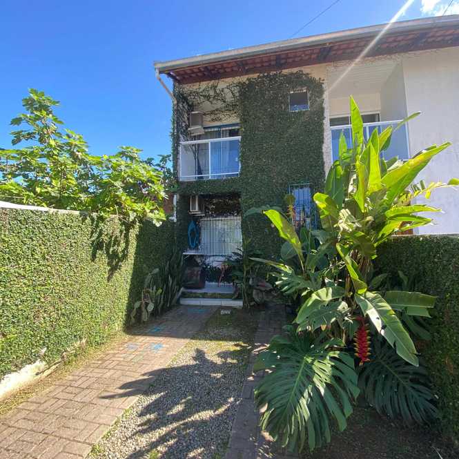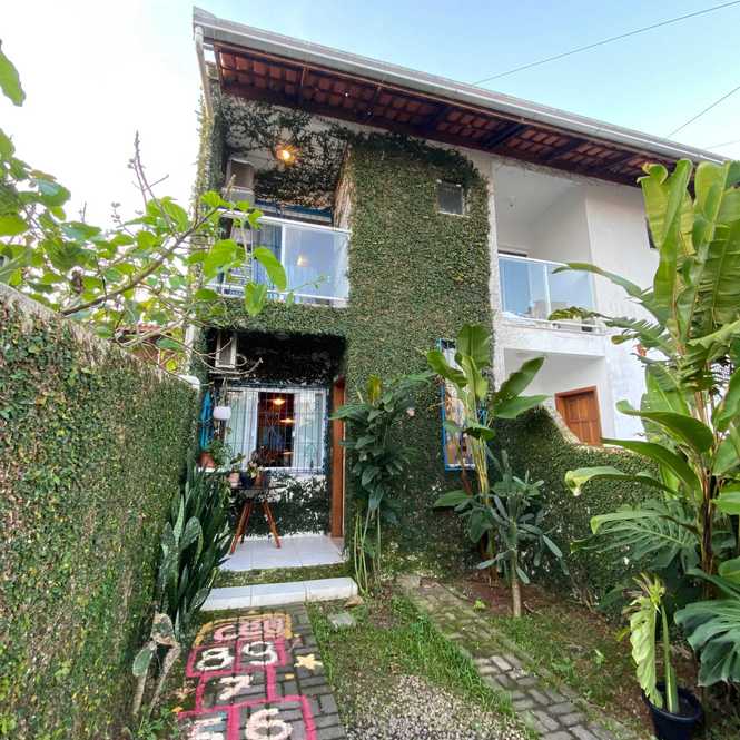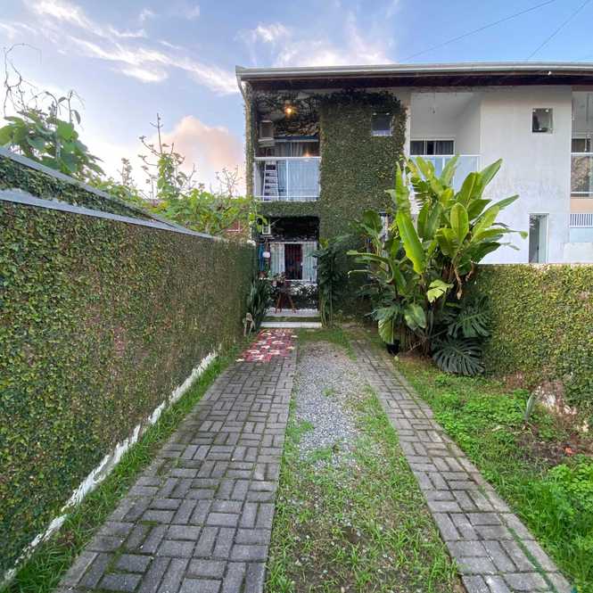 Sobrado com 2 suítes, terreno 100m² e 84m² privativo, em ótima localização em Camboriú. Destaque para a fachada com paisagismo natural, proporcionando um ambiente tranquilo e integrado à natureza.