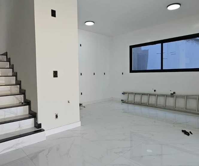 Imóvel com ampla sala de estar e jantar, terraço que pode ser colocado uma piscina, área de serviço, acesso lateral, painel solar para energia sustentável, câmera de segurança para monitoramento, persiana elétrica para conveniência e interfone digital para comunicação moderna.