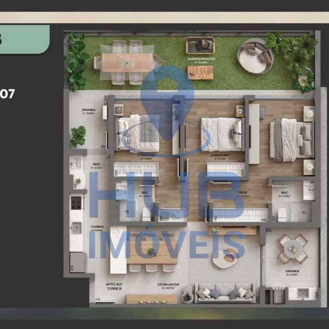 - 5 apartamentos garden: 3 dormitórios sendo 1 suíte, 5 apartamentos loft com 1 suíte