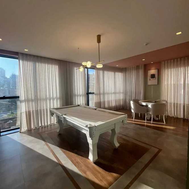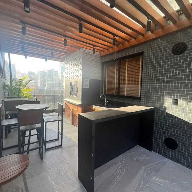 - Living integrado com sala, cozinha e churrasqueira