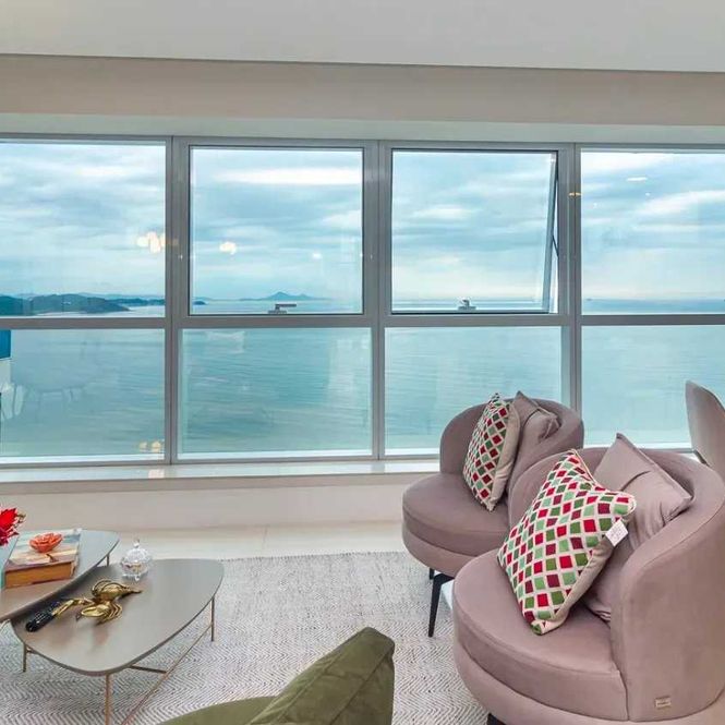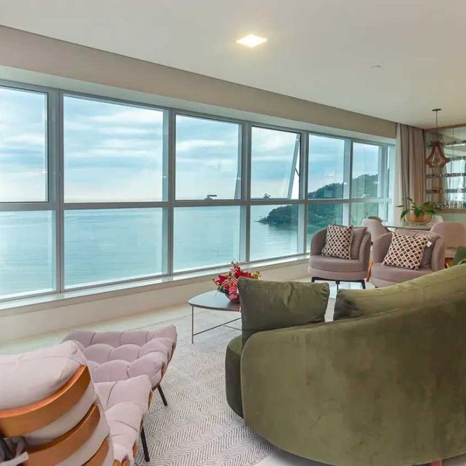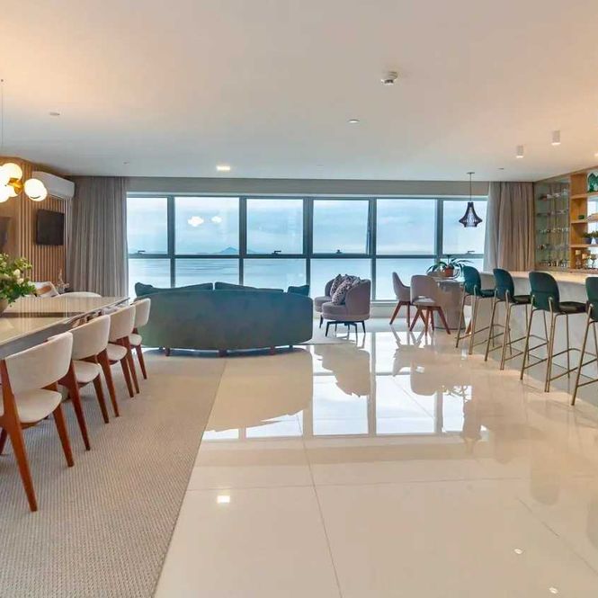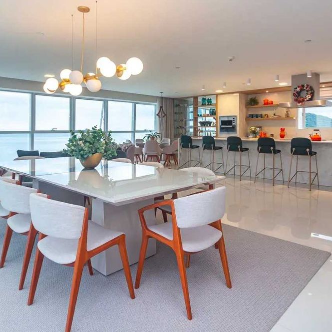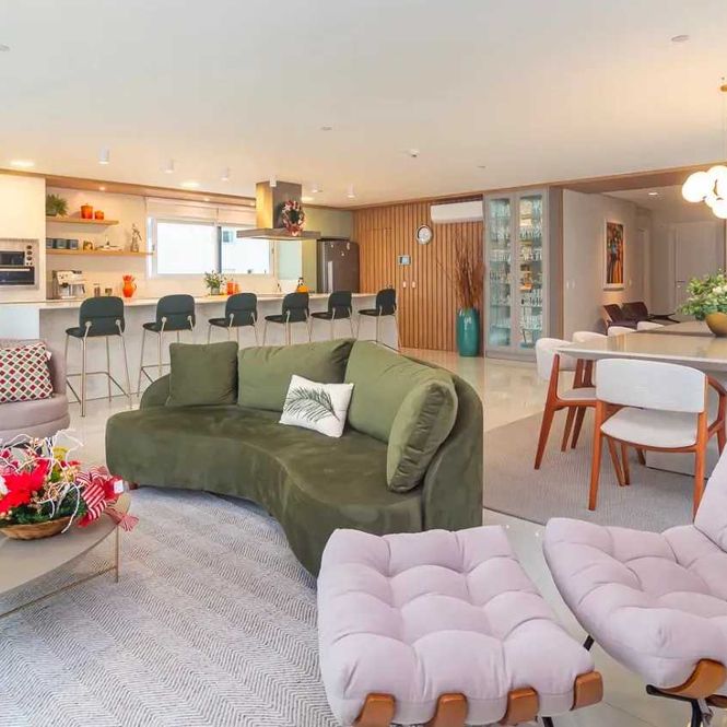 -Amplo living integrado com vista para o mar