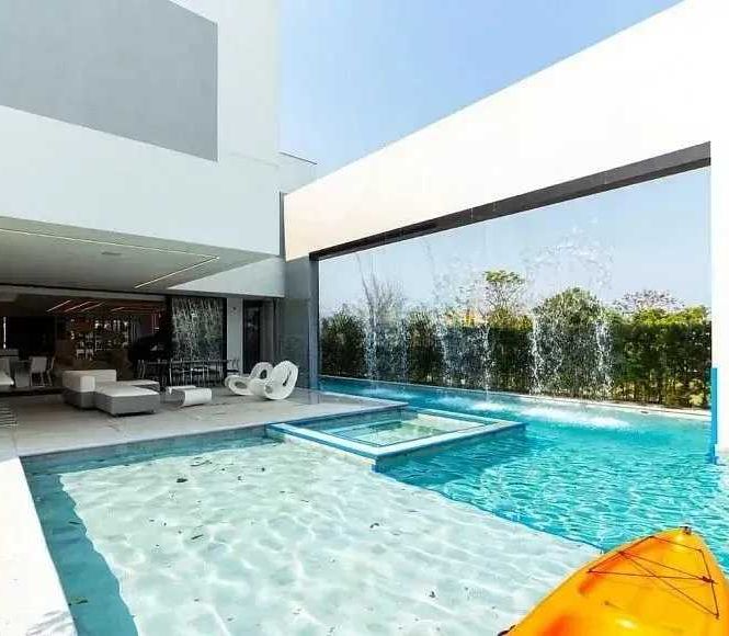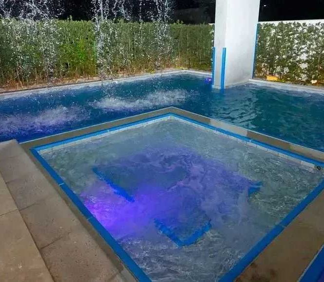 - Piscina com cascata e iluminação cênica