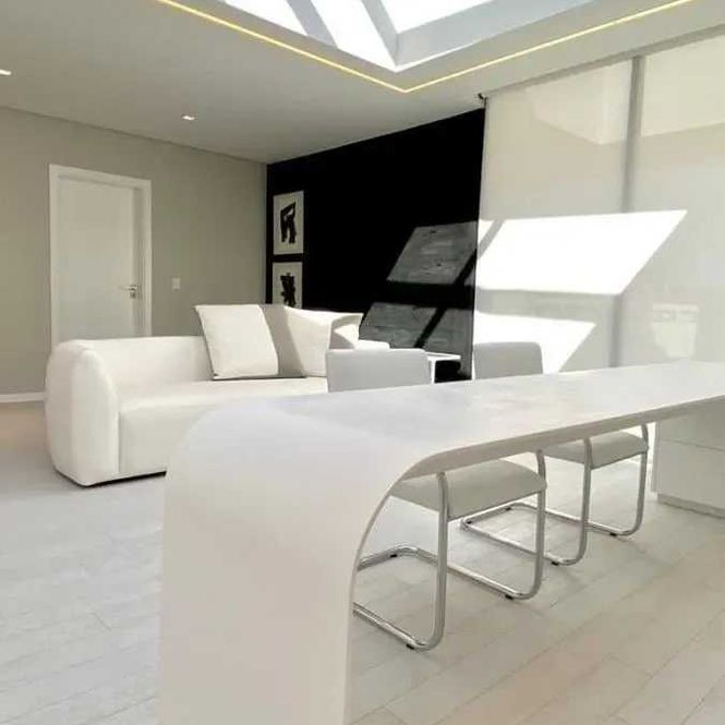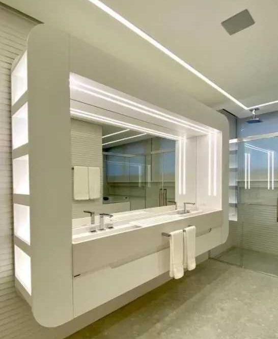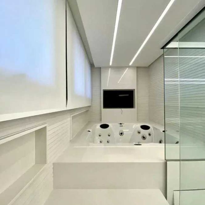 - Design clean e moderno, com decoração sofisticada