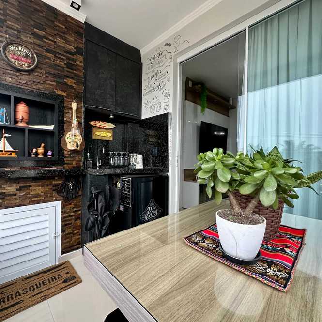 - Sacada ampla com mesa e churrasqueira a carvão