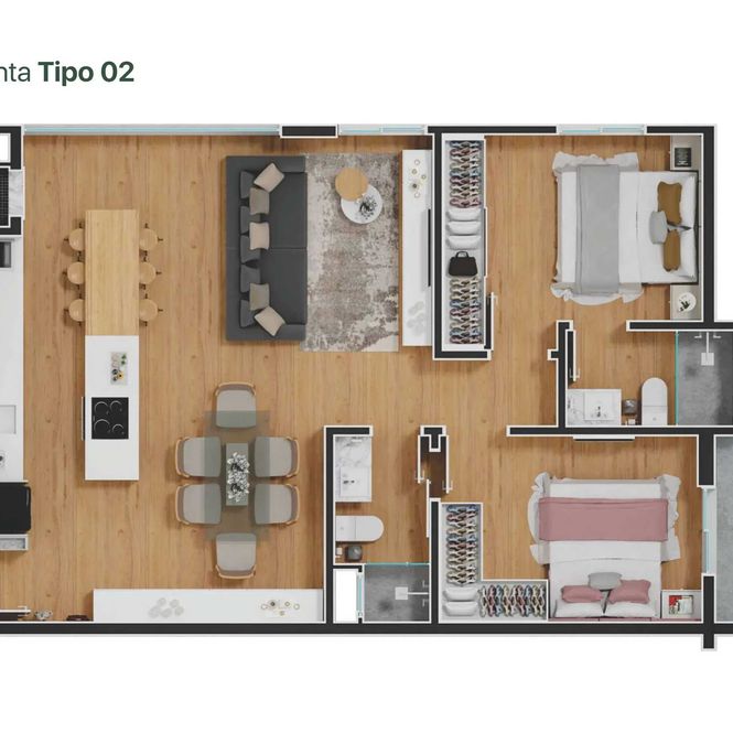 - 2 dormitórios sendo 1 suíte