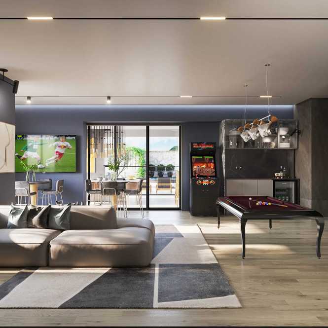 - Sala de jogos integrada ao salão de festas