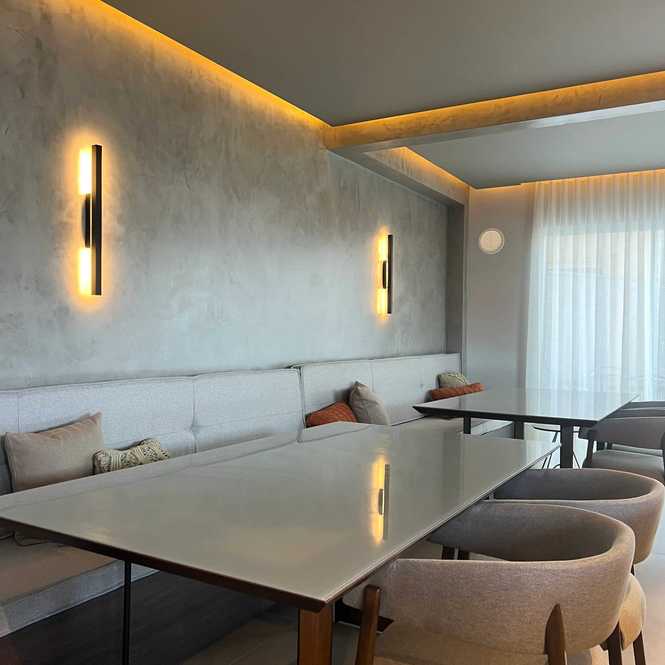 - Acabamento em gesso e porcelanato