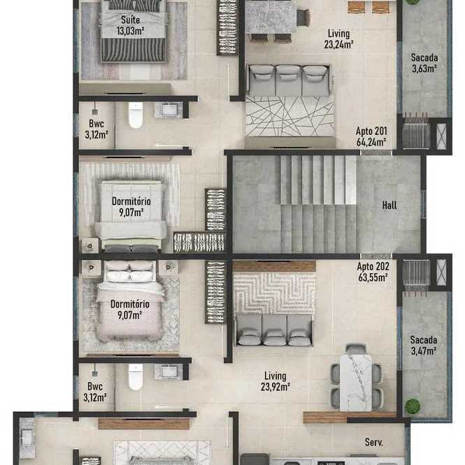 - Acabamentos em porcelanato