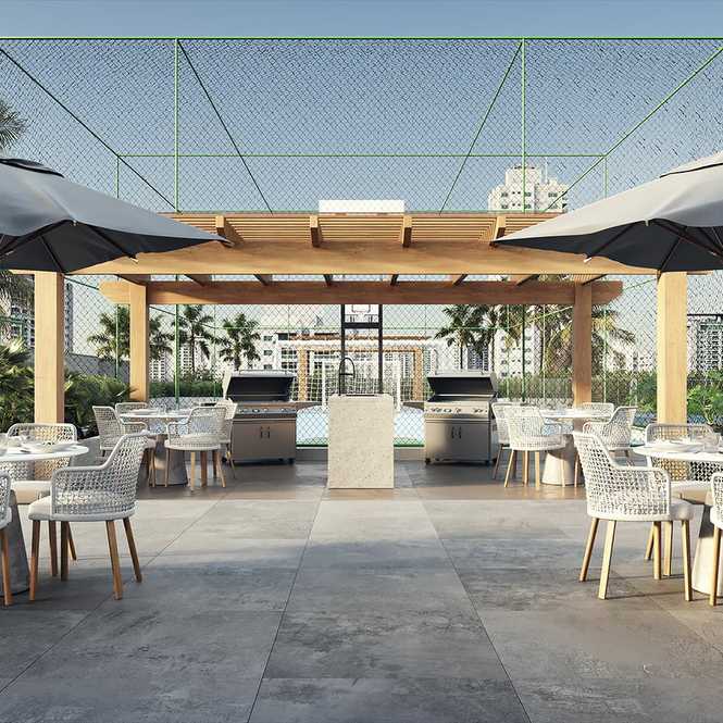 Espaço Gourmet com terraço em frente ao mar