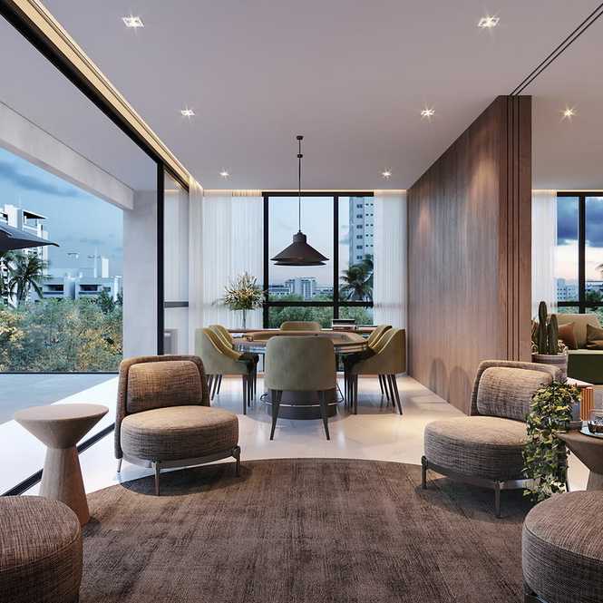 Piso porcelanato na área social