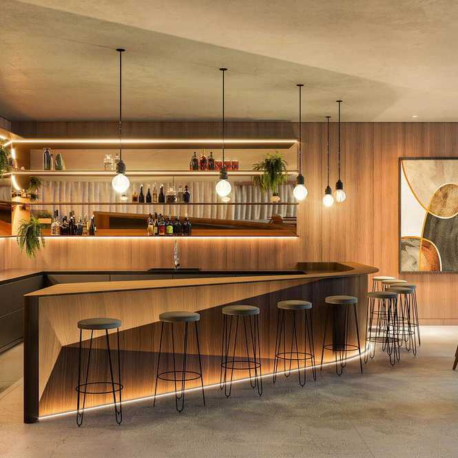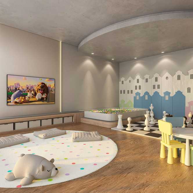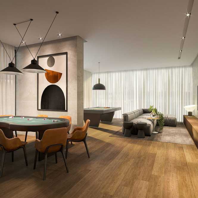 Áreas sociais mobiliadas decoradas e equipadas