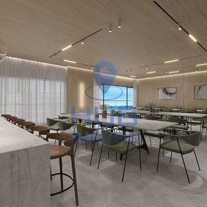 O condomínio oferece internet, piscinas adulto, infantil e térmica, piscina adulto com borda infinita, hidromassagem na piscina, espelho d’água, spa, sauna, academia completa, salão de festas, espaço gourmet, pub, bar, lounge, estar social, brinquedoteca, playground, sala de jogos, sala de games e sala de reunião. Conta ainda com elevador, interfone, alarme, guarita de segurança, bicicletário, hall de entrada decorado e mobiliado, entrada para banhistas com box de praia e medidores individuais de água, luz e gás.