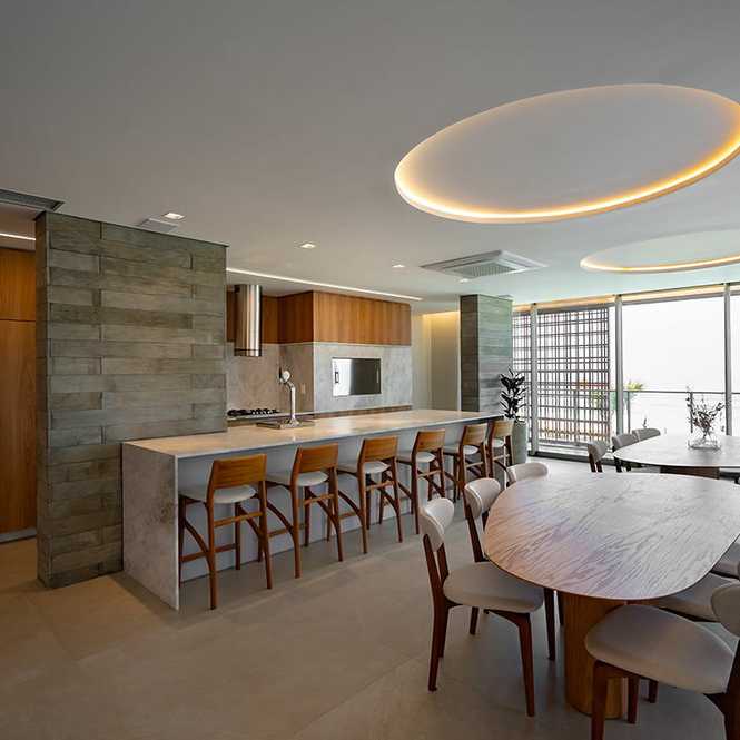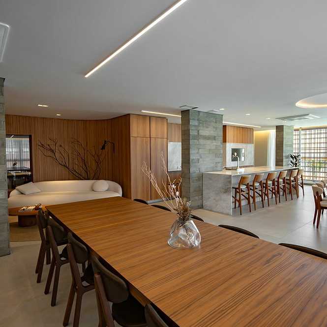 Living integrado (estar/TV, jantar e cozinha)
