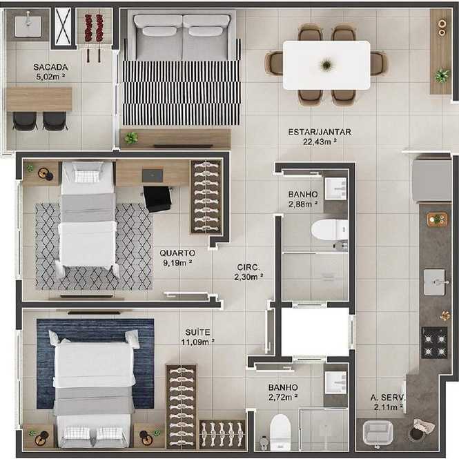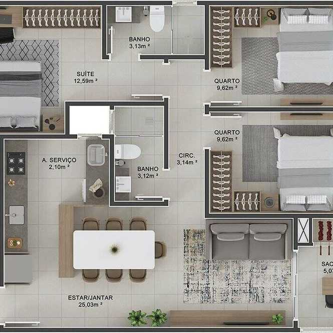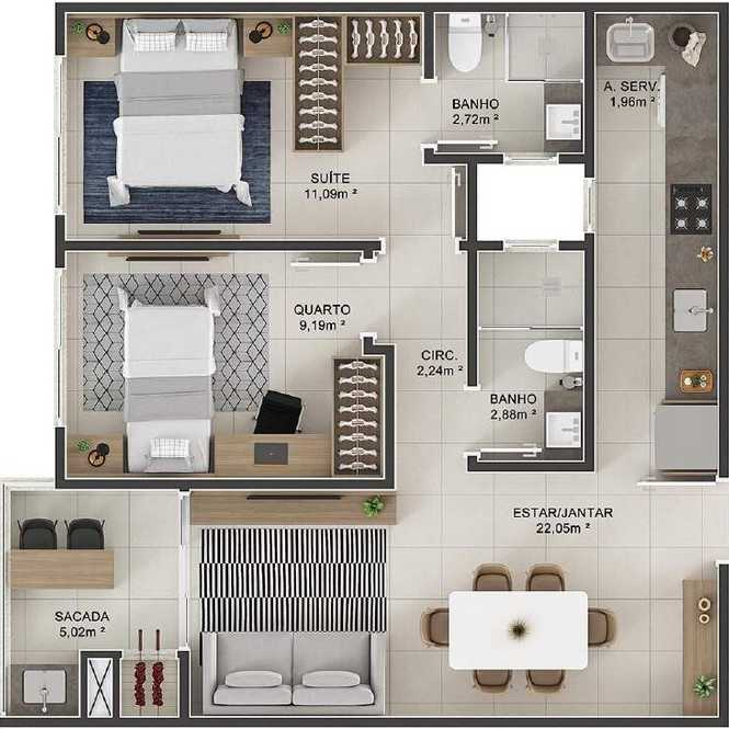 Planta 02 - 3 dorm 83 72m²