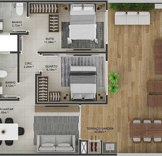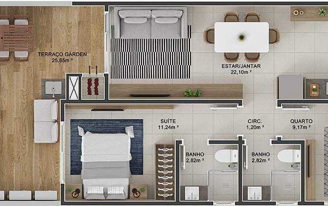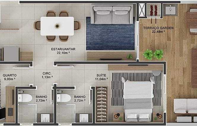 Planta 03 - 2 dorm 101 91m² - garden