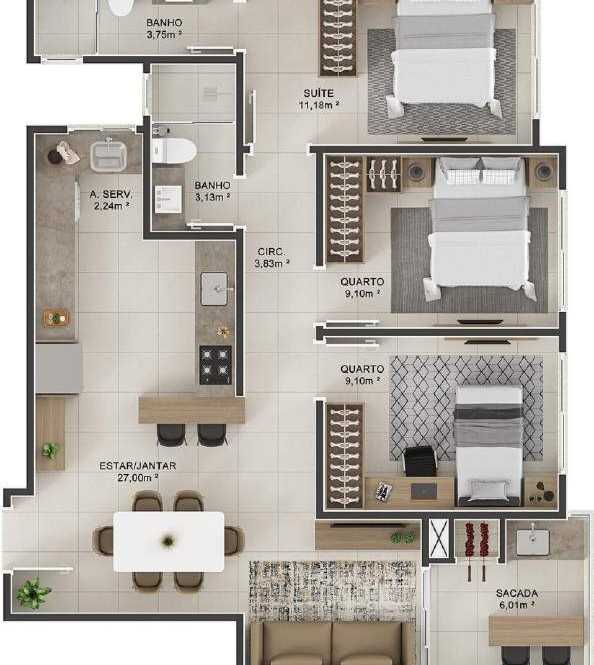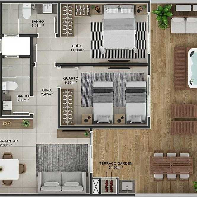 Planta 01 - 3 dorm 112 92m² - garden