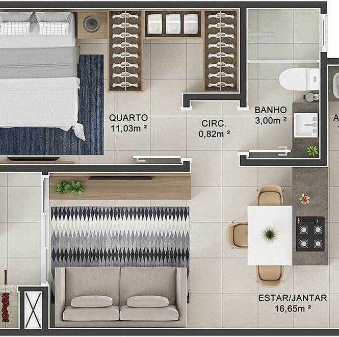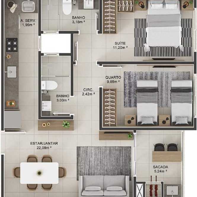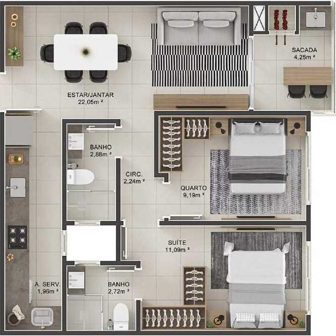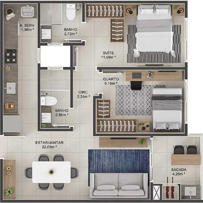 Planta 24 - 2 dorm 65 03m²