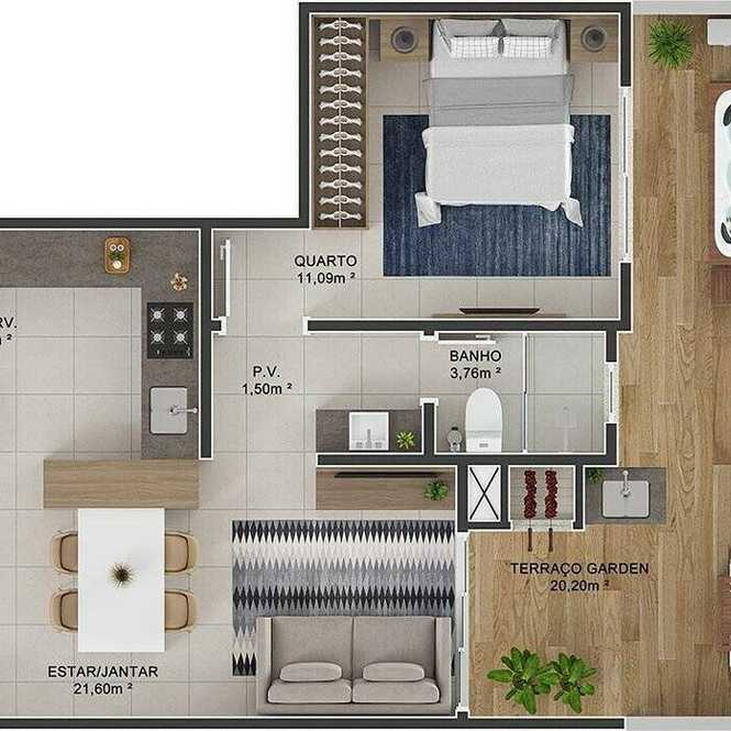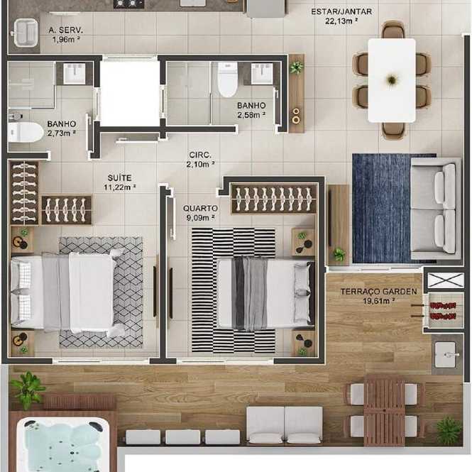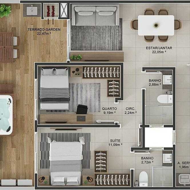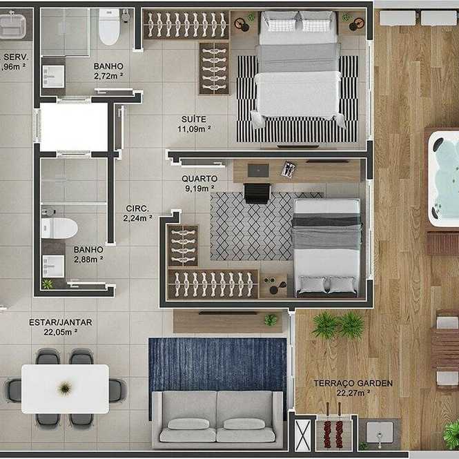 Planta 05 - 2 dorm 96 62m² - garden