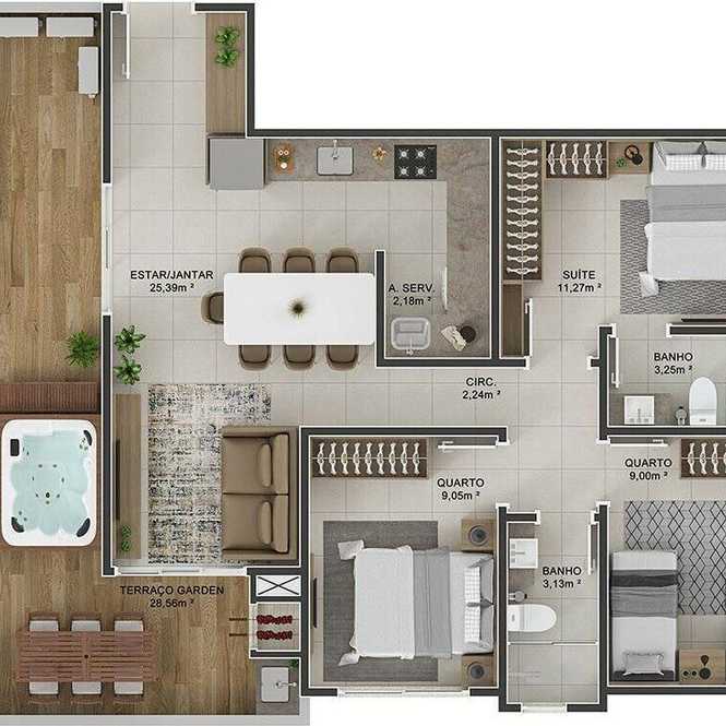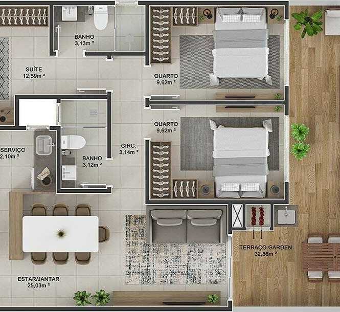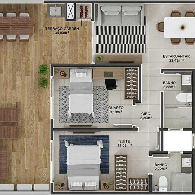 Planta 03 - 2 dorm 101 91m² - garden
