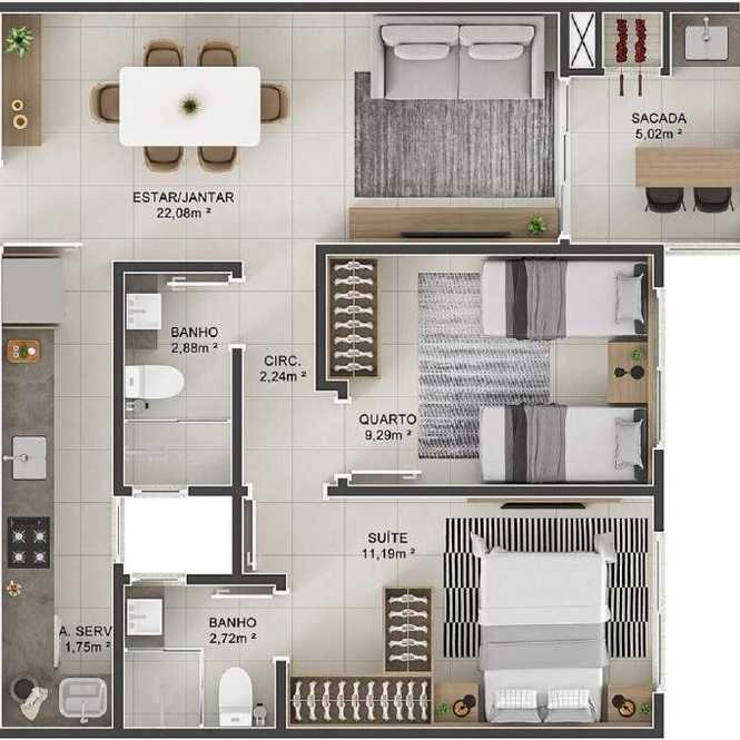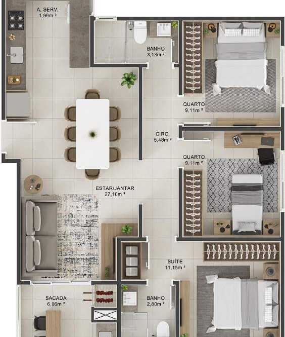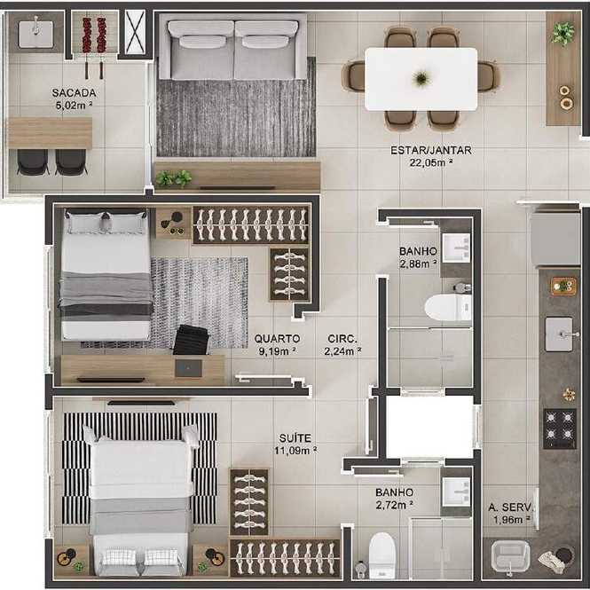 Planta 02 - 3 dorm 83 72m²