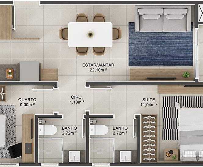 Planta 04 - 2 dorm 65 45m²