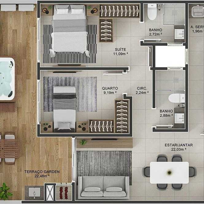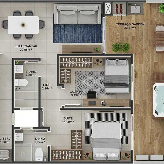Planta 05 - 2 dorm 96 62m² - garden