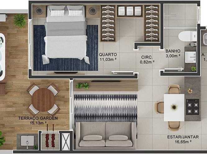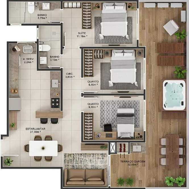 Planta 01 - 3 dorm 112 92m² - garden