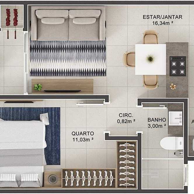 Planta 16 - 2 dorm 65 17m²