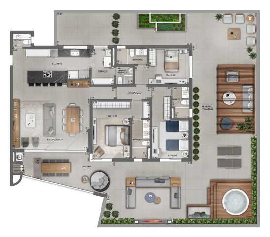 Planta 03 - 3 dorm 197 57m² - garden