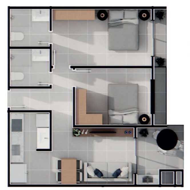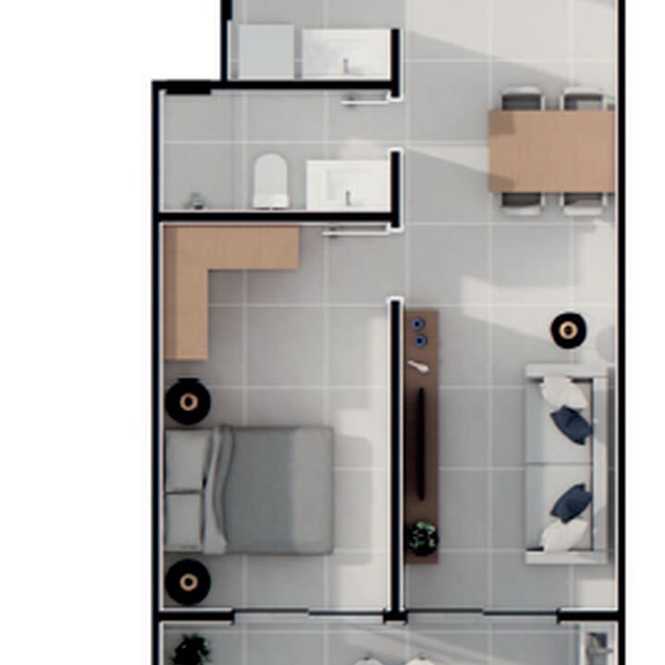 Planta 03 - 1 dorm 89,77m²