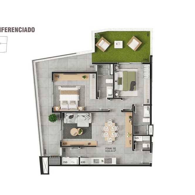 02 Suites Garden - 116,36 m²
