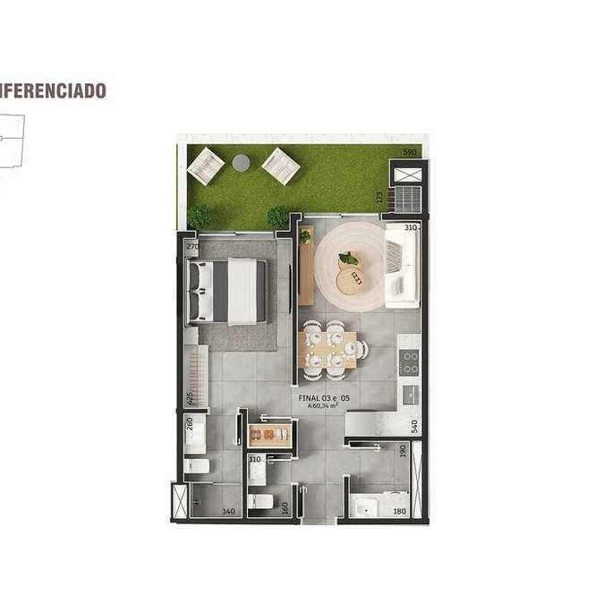 01 Suíte - Personalizado 2 Studios - 58,87 m²