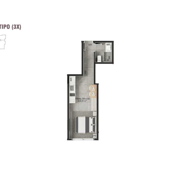 01 Suíte - Personalizado 2 Studios - 50,87 m²