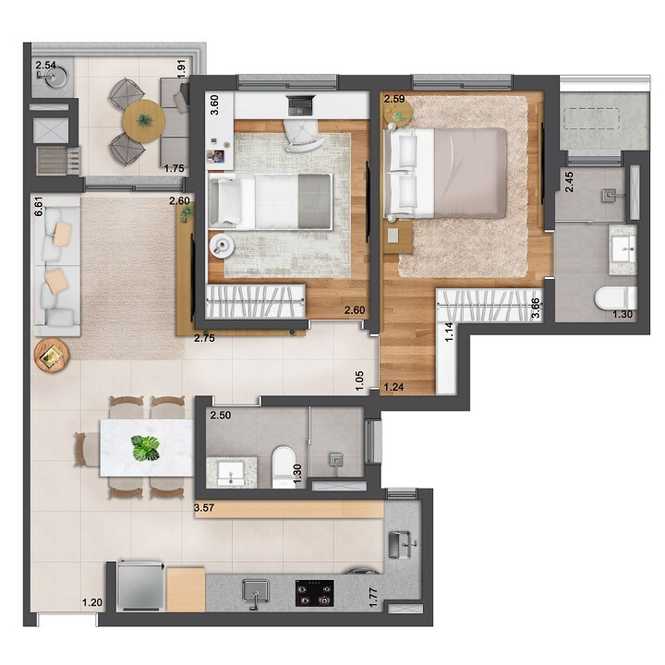 - Área Privativa de 65,16 m²