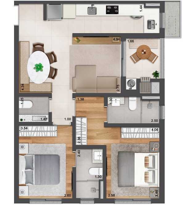 Planta 04 - 2 dorm 75 28m²