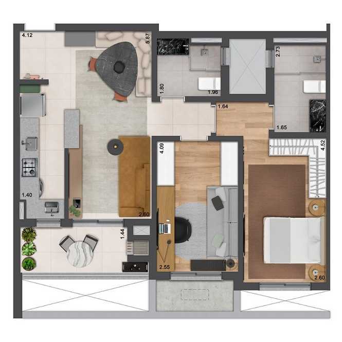 Planta 01 - 1 dorm 59 30m²